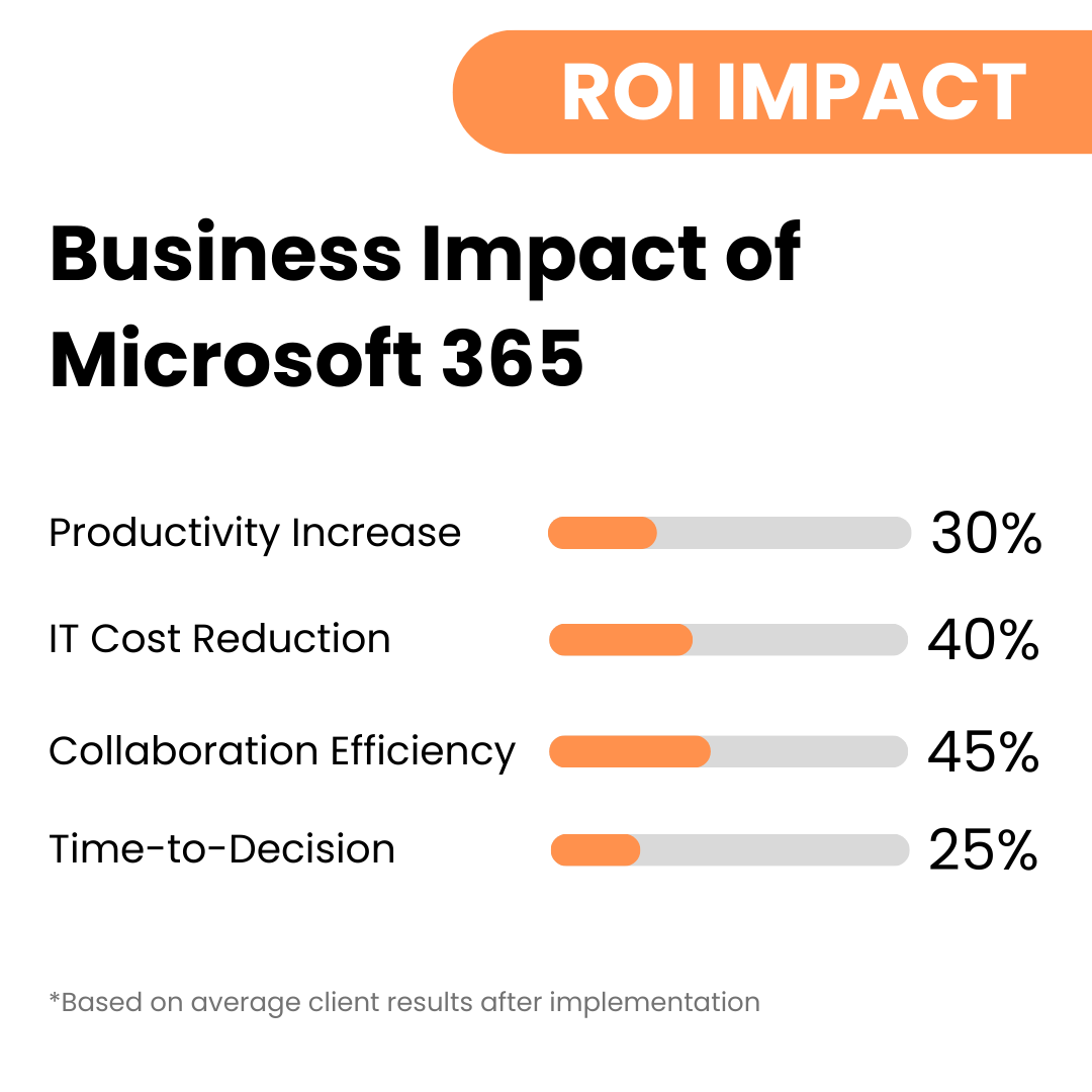 Reduce IT infrastructure costs with cloud-based solutions that eliminate the need for expensive hardware and maintenance. Our clients typically see 20-40% reduction in IT operational costs after migrating to properly configured Microsoft 365.